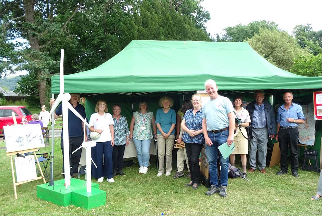 Many visitors to the stall were shocked by the scale of the proposals and the turbine heights, as demonstrated by the turbine model, made by Barry Hayness from Cellan. Reform Powys County Councillor Iain McIntosh, (Brecon & Radnor), spent a long time listening to our concerns.